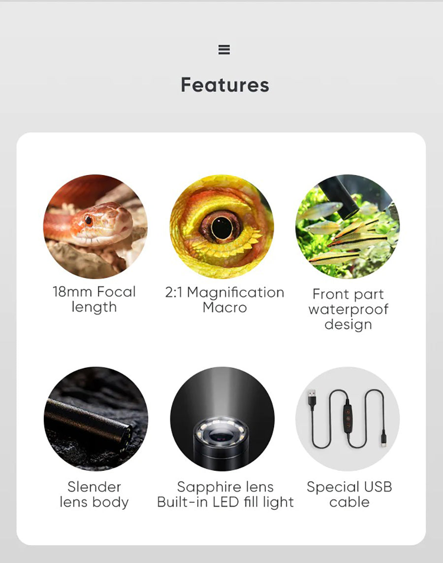 The front of the lens is waterproof, making it ideal for shooting in challenging environments such as near water bodies. The working length of 18 cm ensures that you can even get up close and personal with aquatic life without risking damage to your equipment.