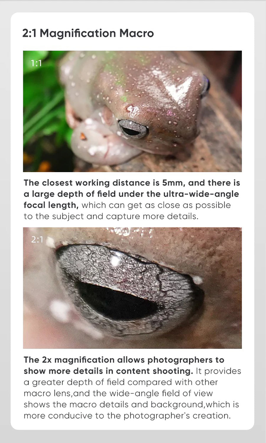 Extreme Magnification: With a 2x magnification, this lens allows you to capture your subject in stunning detail, making it perfect for macrophotography and close-up shots. The 70º angle of view provides a wider perspective, letting you capture more of your subject and its surroundings in a single shot.