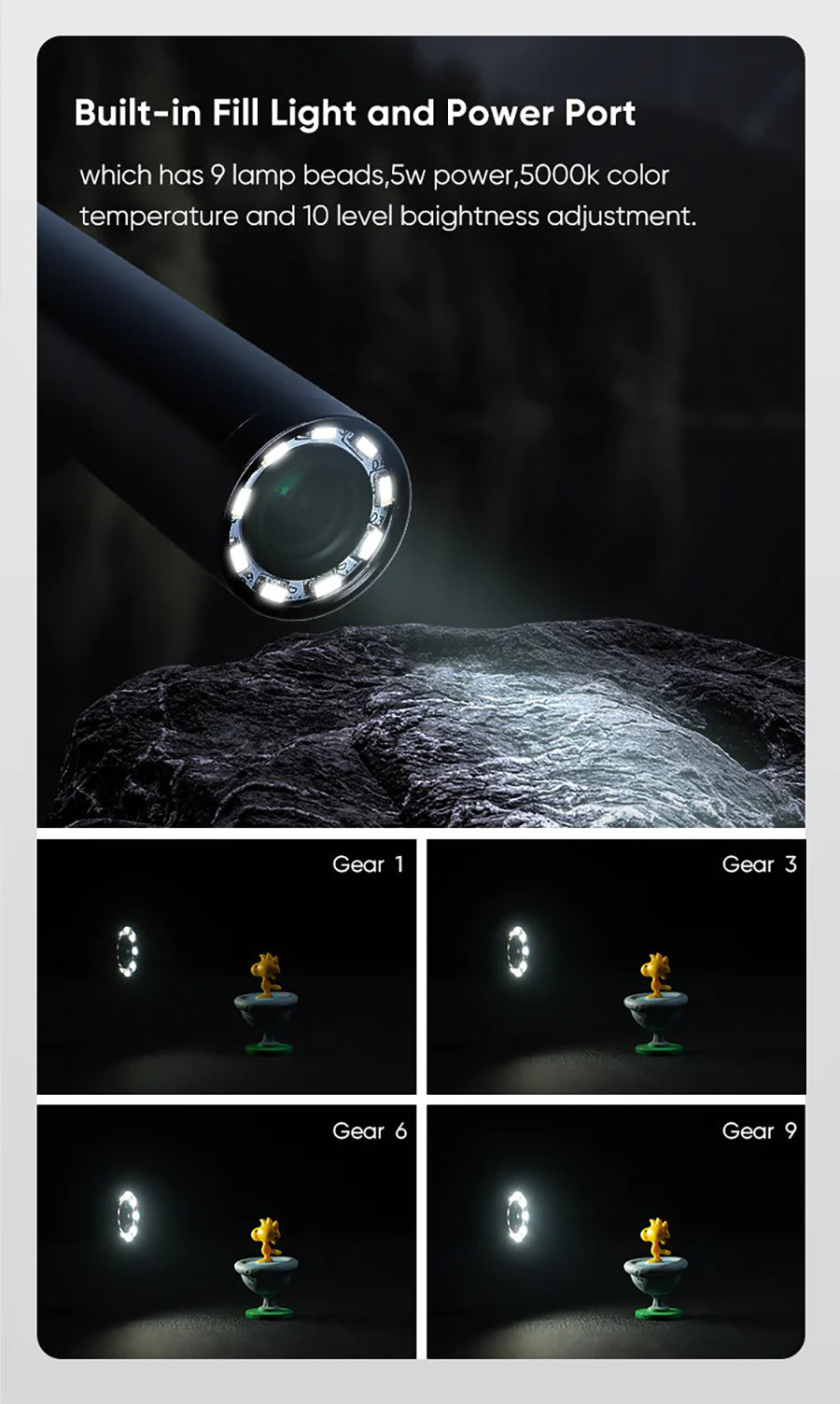 Built-in LED Light: The front of the lens comes equipped with an LED light, which provides additional illumination for your shots. This feature is particularly useful when shooting in low-light conditions or when you need to highlight specific details of your subject.