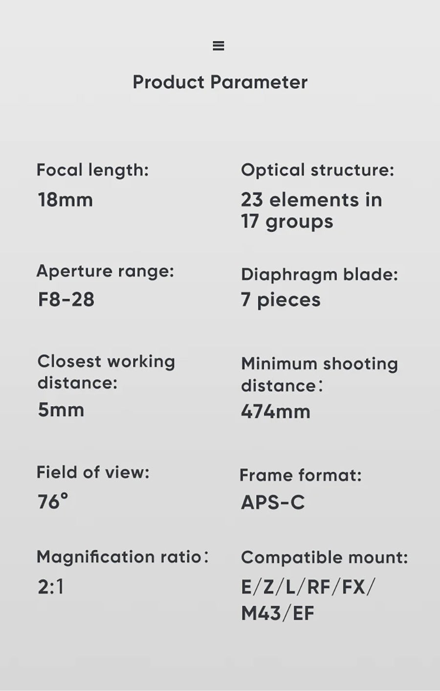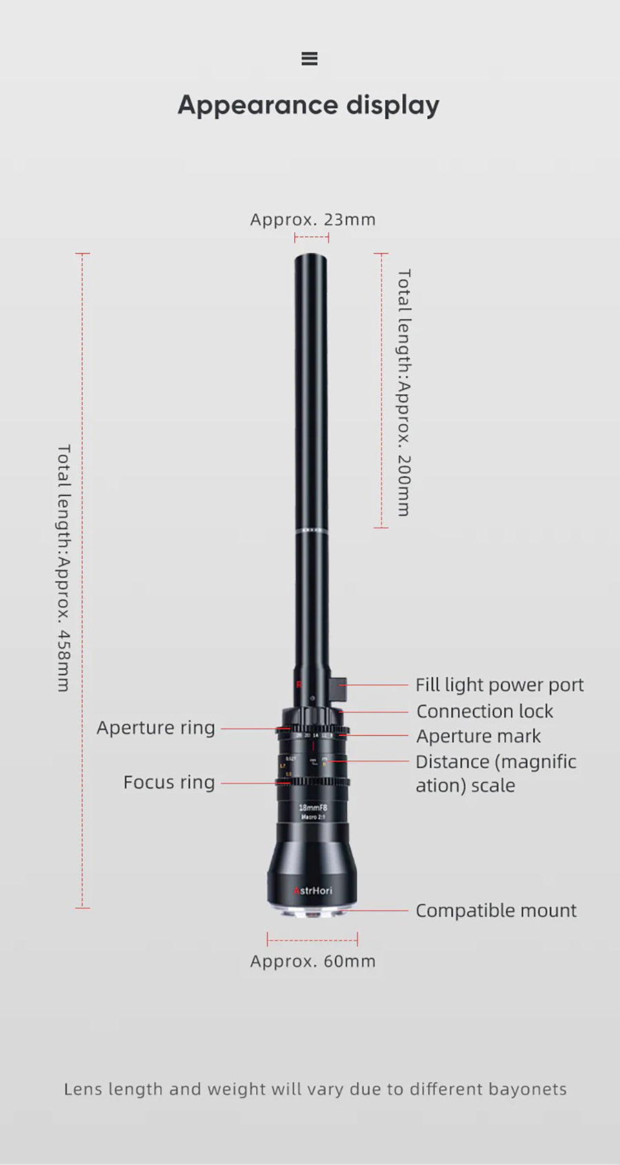 1x AstrHori 18mm F8 2x Probe APS-C Cine Macro Lens(long tube+body base)