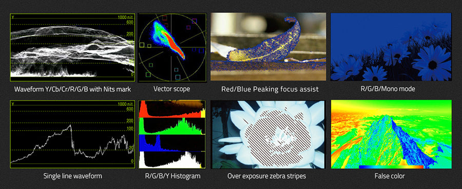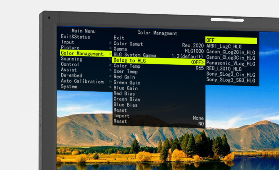 The monitor has built-in multi camera logs to Rec 709 conversion 3DLUTs, including Log-C, C-log, S-log2, S-log3, V-log, J-log1, RedLogFilm. You can also import own 3DLUTs to monitor by USB stick, support 17x17x17 3DLUT cube files.
