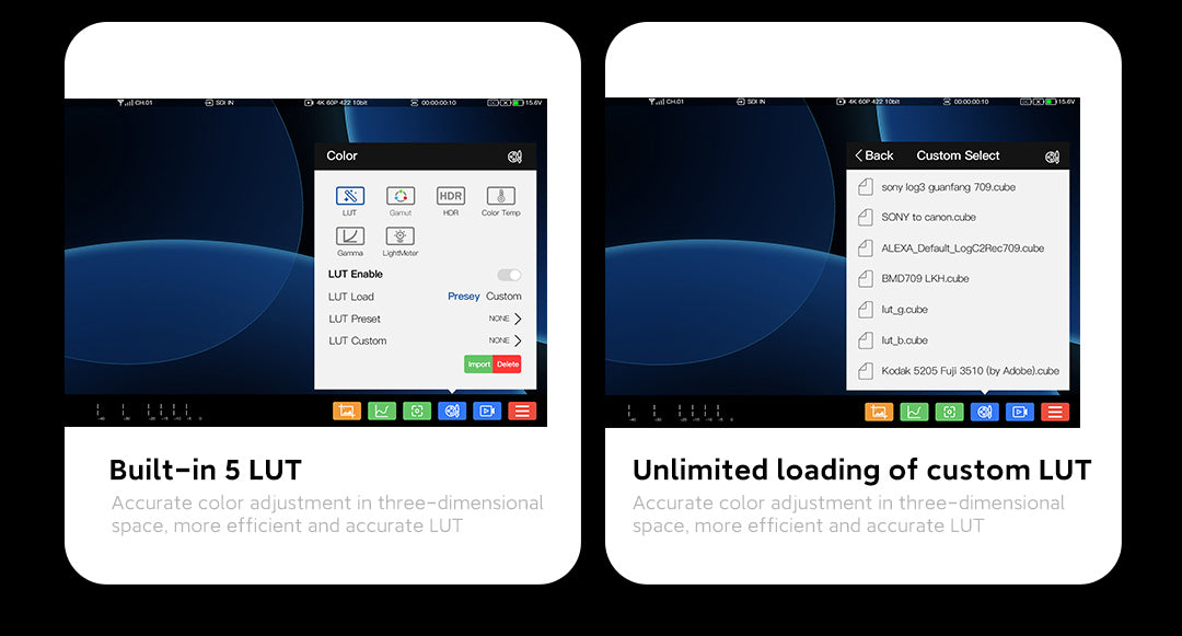 Built-in 5 LUTS | Unlimited Loading of Custom LUTS