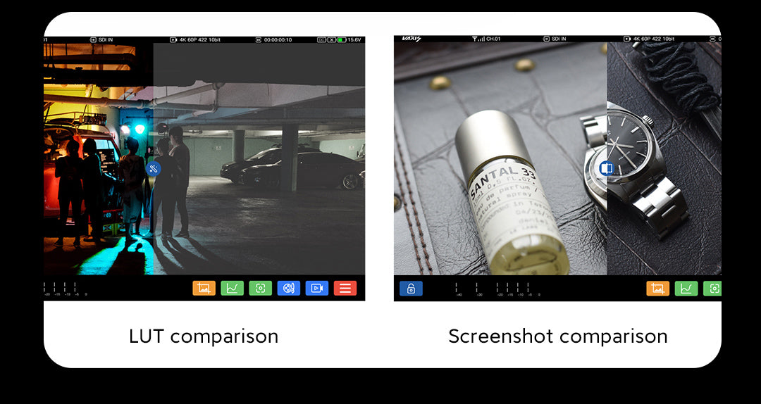 Comparison of screenshots and LUTS