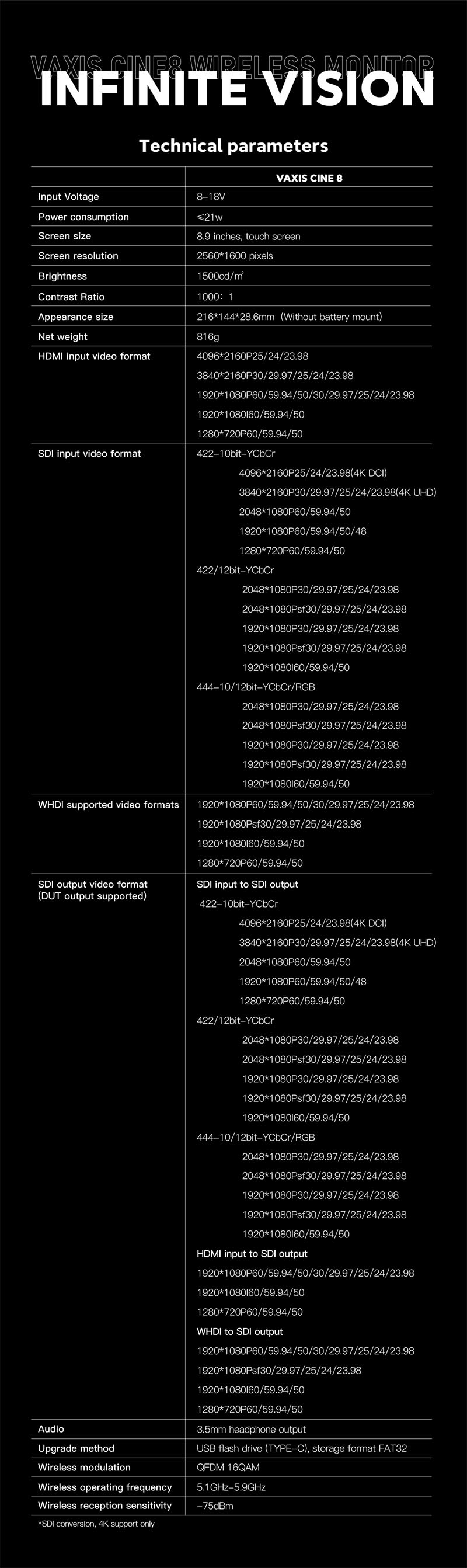 Vaxis CINE8 pioneered 6G SDI image input and output, true full-frame 4K