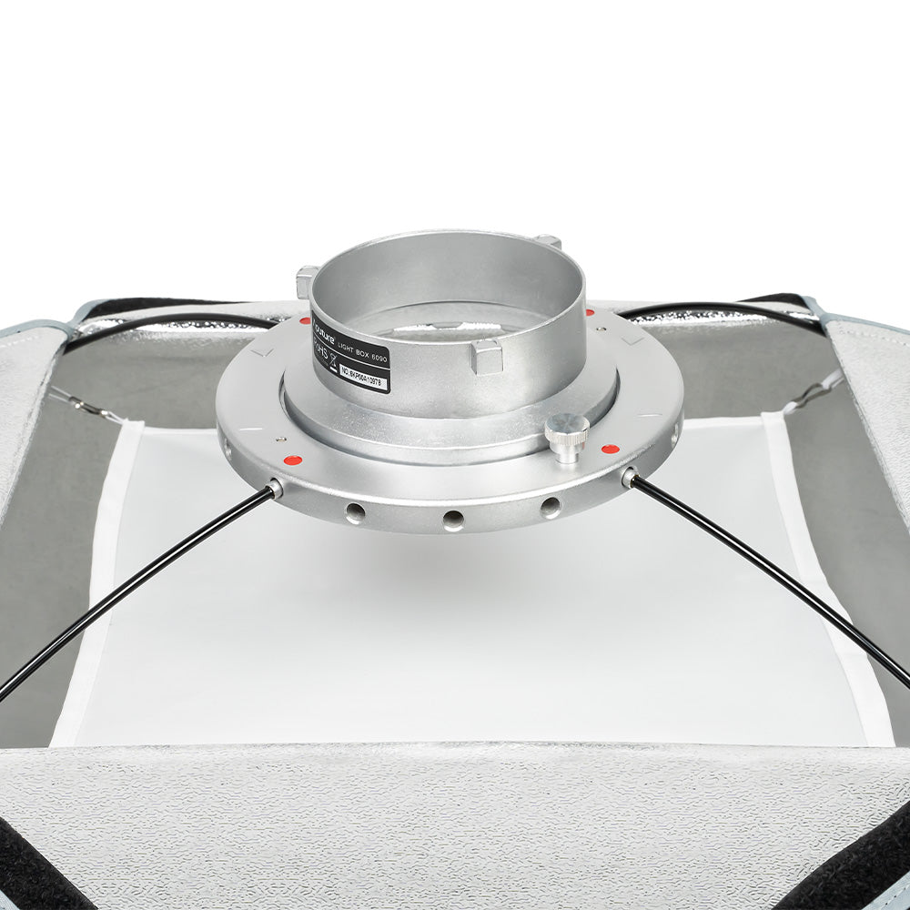 Its lightweight 4-rod construction and Bowens Mount speedring, only weighing in at 1.2kg, allow for portability, mobile operation, quick setups, and easy rigging.