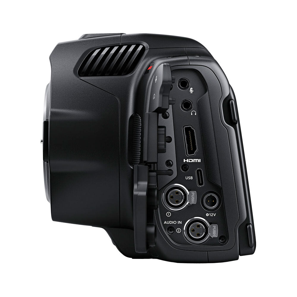 The compact 6K Pro retains the familiar controls and menu layout of the 6K model, such as ISO support up to 25,600, 13 stops of dynamic range, and 1920 x 1080 HDR monitor output. Professional audio support now includes two mini XLR inputs with phantom +48V power, a 3.5mm stereo input, a mono speaker, a headphone output, and a built-in stereo mic system.