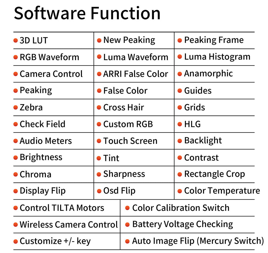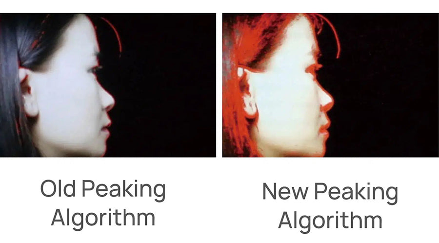 - New peaking, anamorphic lens calibration, customized peaking range( Peaking frame), Brightness and RGB signal detection before/after loading 3D LUT.