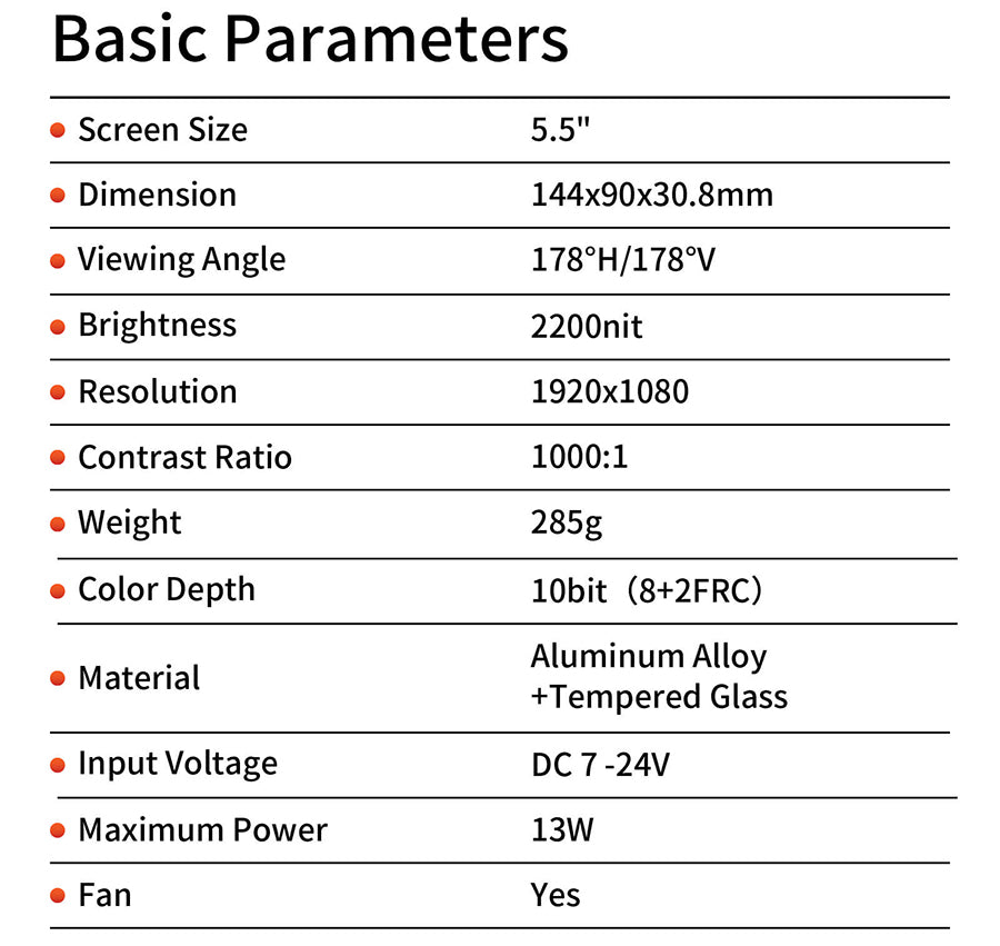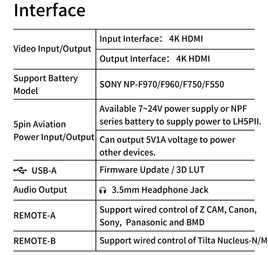 - 2200nit 5.5inch touchscreen monitor. Factory calibration for Rec. 709, DCI-P3 85%;