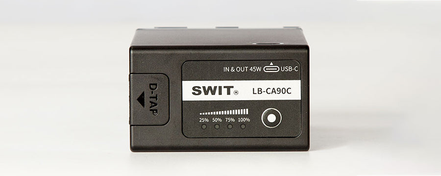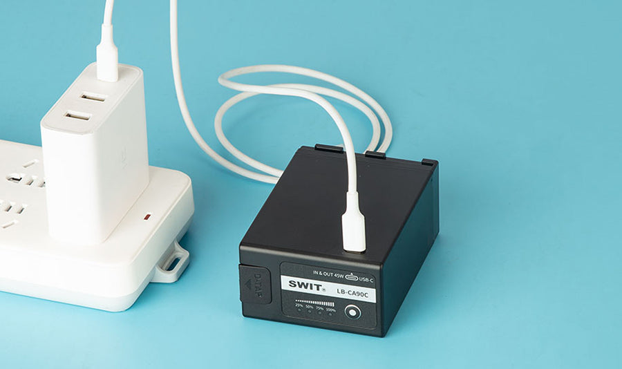 Besides USB-C charging, you can charge LB-CA90C via D-tap socket, by SWIT ultra portable 2-way D-tap charger PC-U130B2, fully charge within 2h 40m.