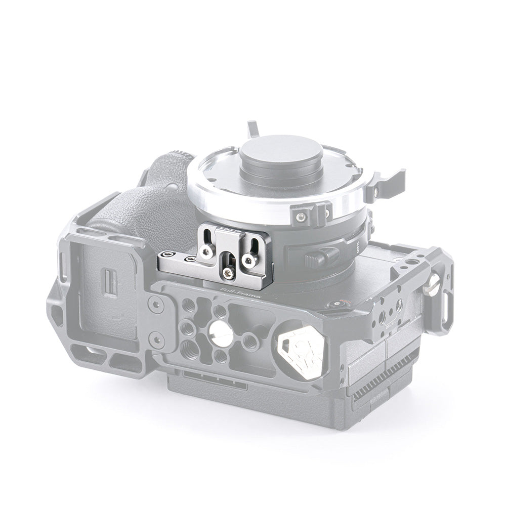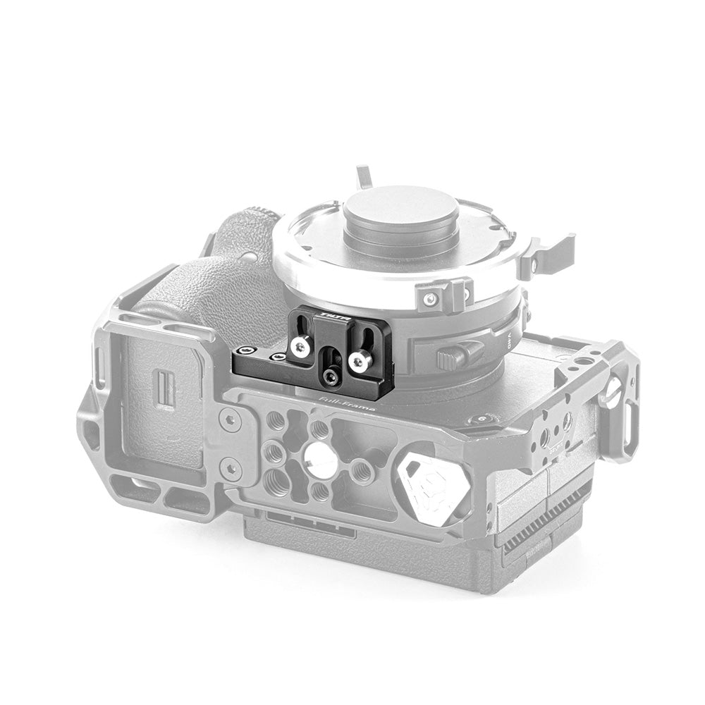 The Tilta PL Mount Lens Adapter Support for Sony FX3/FX30 V2 can accommodate various models of PL-E mount adapters via an adjustable slider.