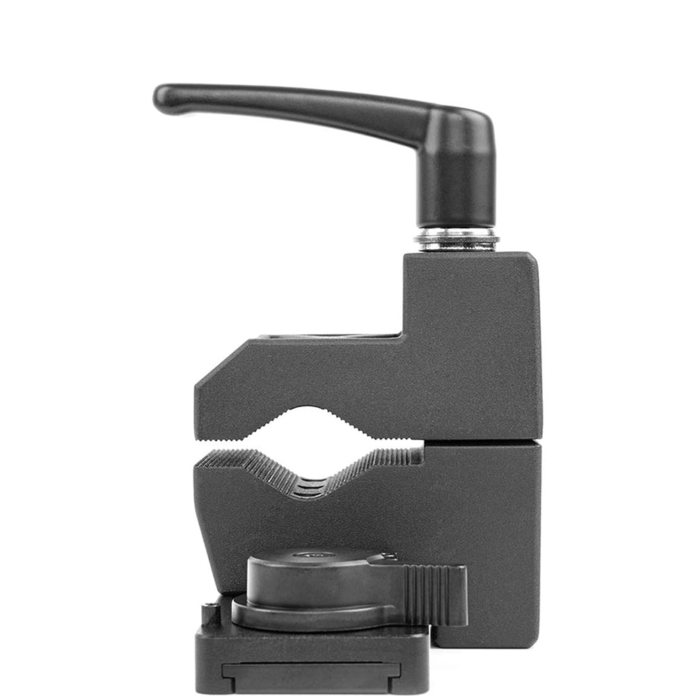 Aputure Quick Release Clamp. The Lighting Clamp was designed by Aputure to securely attach products, such as control boxes or battery power stations, to lighting stands, or any other secure mounting point.