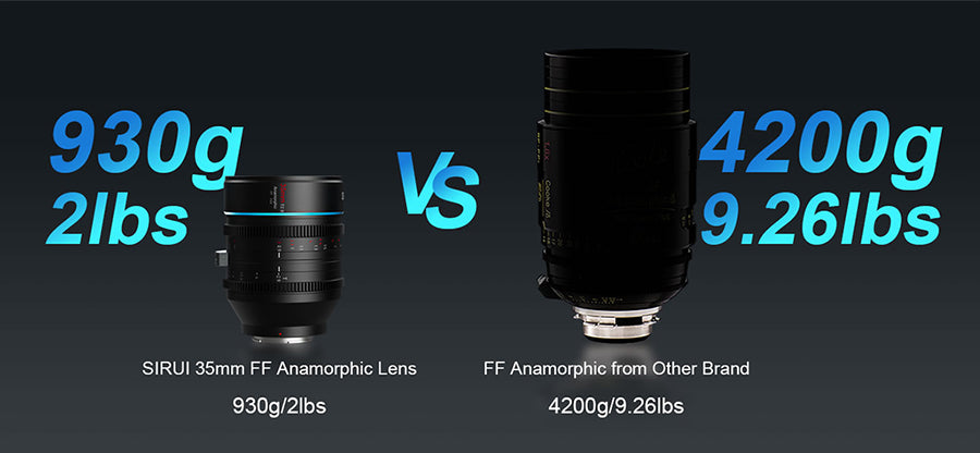 The lightest lens in the lieup weighs only 930g/2lbs, More compact and lightweight than similar products.
