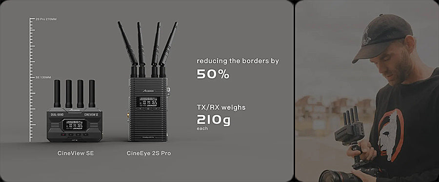 The CineView SE is the most powerful model ever created for a faster, more responsive feel. Add to that a strong and powerful enough signal that can transmit up to 1200ft distance.