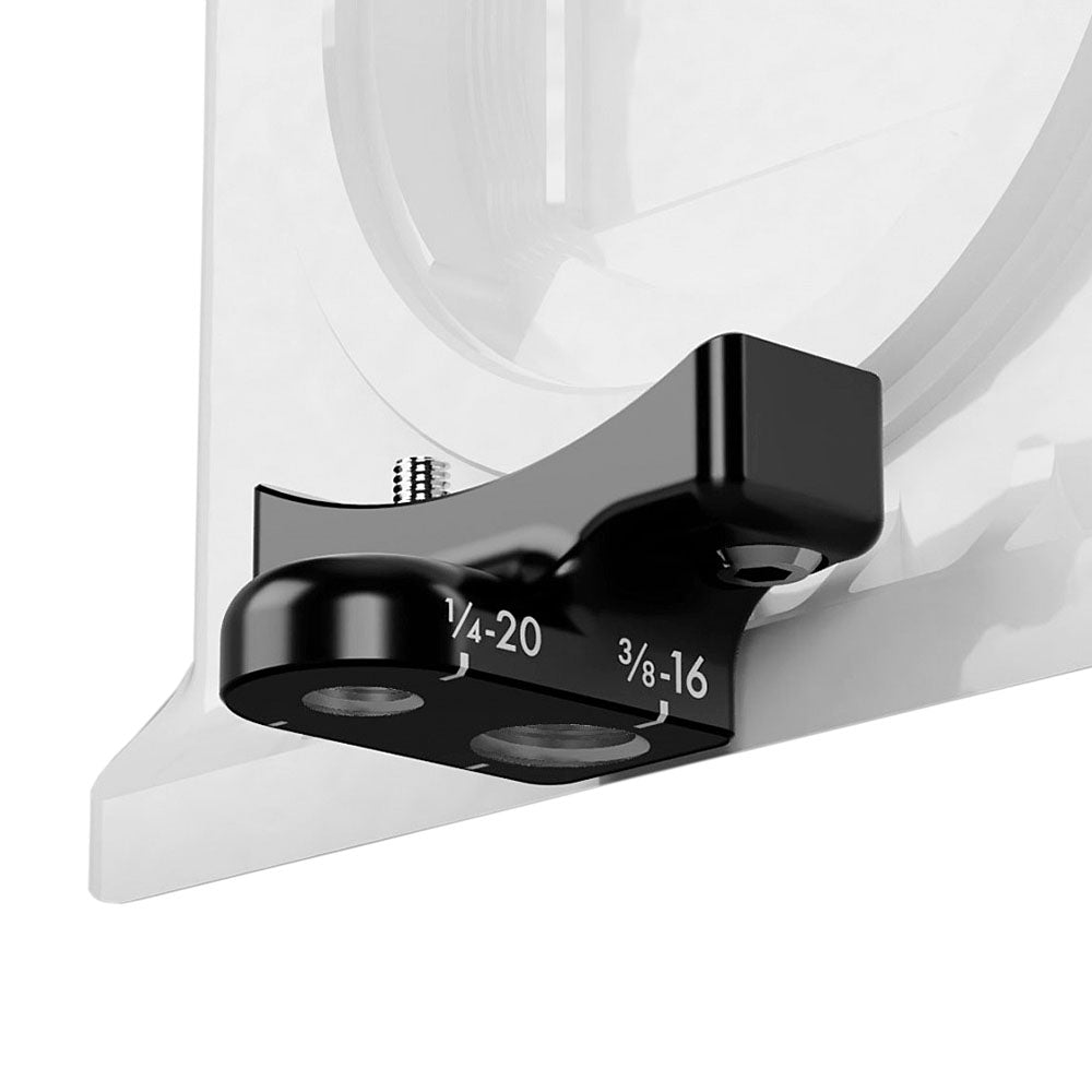 Essential to the concept is the included robust support foot engineered to match the Komodo’s body size, allowing the mount to be tied rigidly to a base plate or other support with 1/4-20 and 3/8-16 fittings.