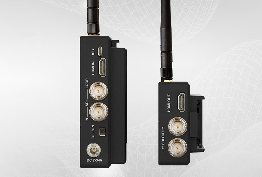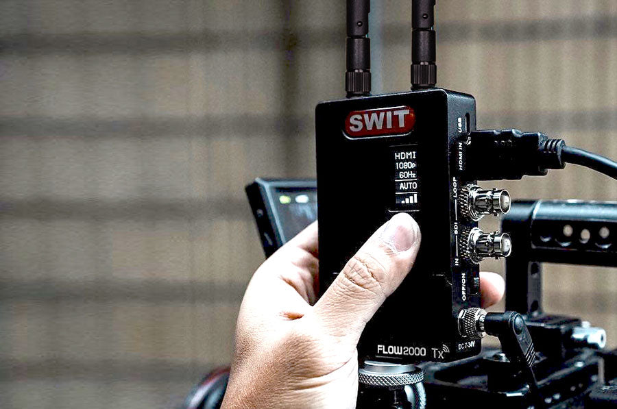 FLOW2000 wireless system is based on SWIT latest KUWI wireless technology, 5.1-5.9GHz license free bands, DFS comply, supports 3G/HD-SDI and HDMI (Max 1080p60) to transmit 2000 feet (600 meters) Line-of-Sight distance. The system is pure hardware connection, plug and play, which is widely used in director moni- toring, drone, ropeway camera, steadicam etc.