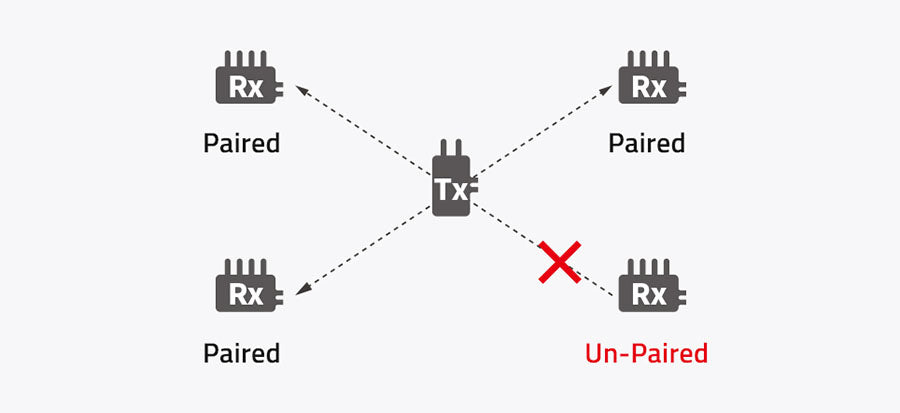 Support 1 transmitter to unlimited quantity receivers reliable multicast mode. The transmitter and receivers are paired and double encrypted by private transmission protocol and by AES128, in order to protect the footages.