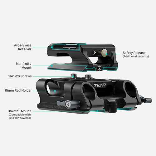- [RONIN READY] via Built in Arca Swiss Connection on the Bottom Plate