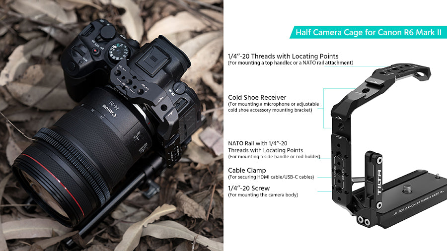 Introducing our Half Camera Cage for Canon R6 Mark II, the perfect accessory for photographers and videographers looking to enhance their camera’s functionality and protection.