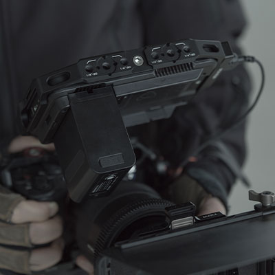 The integrated Cold Shoe Receiver can be used in conjunction with our Cold Shoe Bracket in order to mount an additional monitor on top of the cage for multi-cam monitoring.