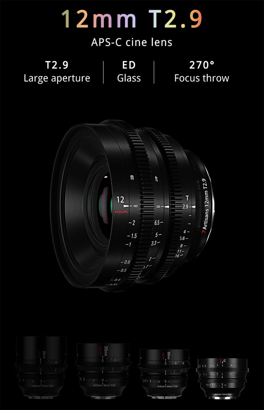 The Vision series has its fourth new member! Ultra-wide angle 12mm T2.9 APS-C cine lens! Make up for the lack of wide-angle end of the Vision series More complete, fully meet your photography needs.