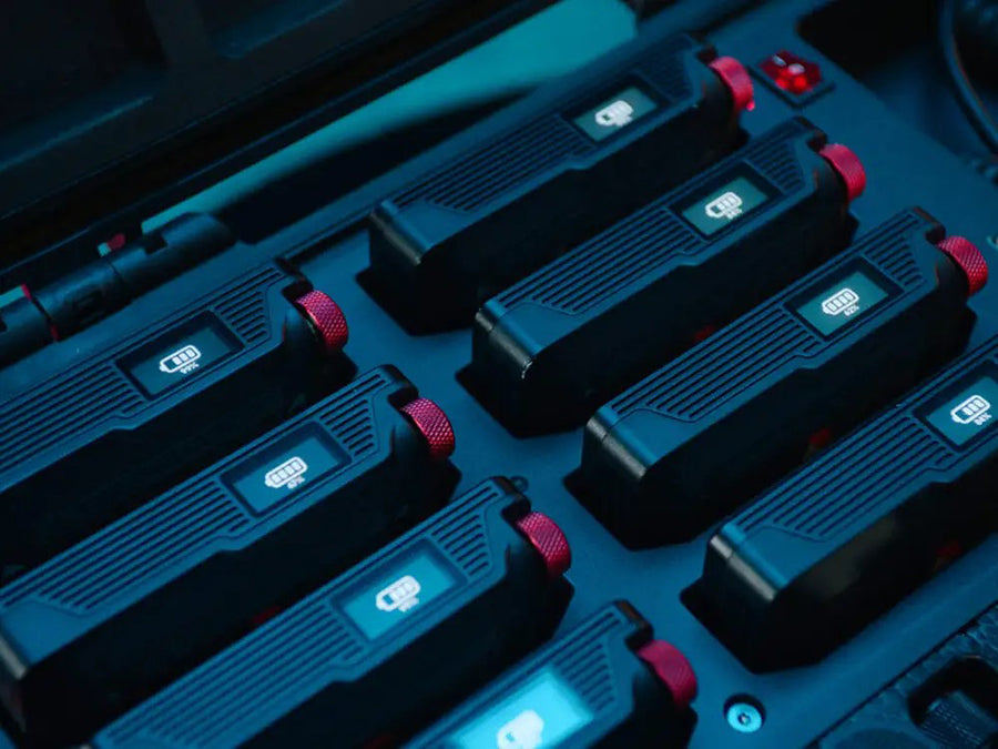 - Stores and Charges 8 MC Pro Lights via AC or D-Tap Power