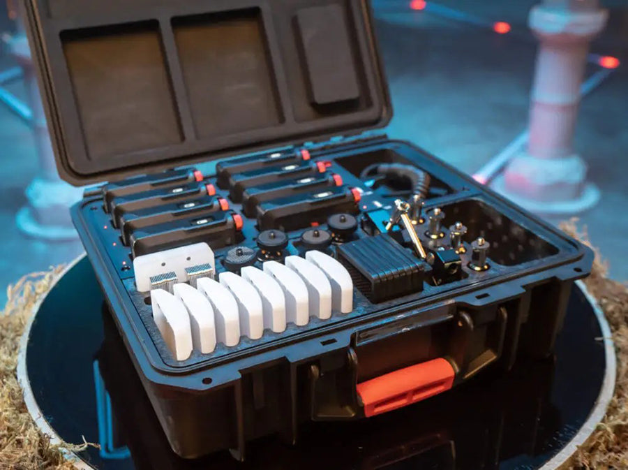 The 8-Light Kit expands the flexibility of the multifunctional MC Pro with not only 8 times the number of fixtures, but additional sets of magnetized modifiers, mounting accessories, including 1⁄4-20in Articulating Arm to Clamp Adapters and 1⁄4-20in Screw to Baby Pin Adapters. Featuring a drop-in design, the 8-Light Kit charges using the contact pins on the MC Pros for a seamless charging workflow and affords users the ability to quickly substitute MC Pros in a scene to minimize lighting down time or even use all 8 lights at once.