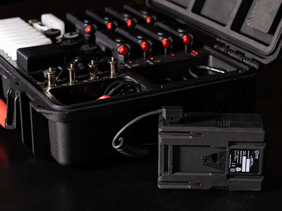 For filmmakers constantly on the move who want to use V Mount or Gold Mount batteries, you can power the MC Pro 8-Light Kit using a D-Tap battery with the included D-Tap to D-Tap Power Cable – in lieu of AC power.
