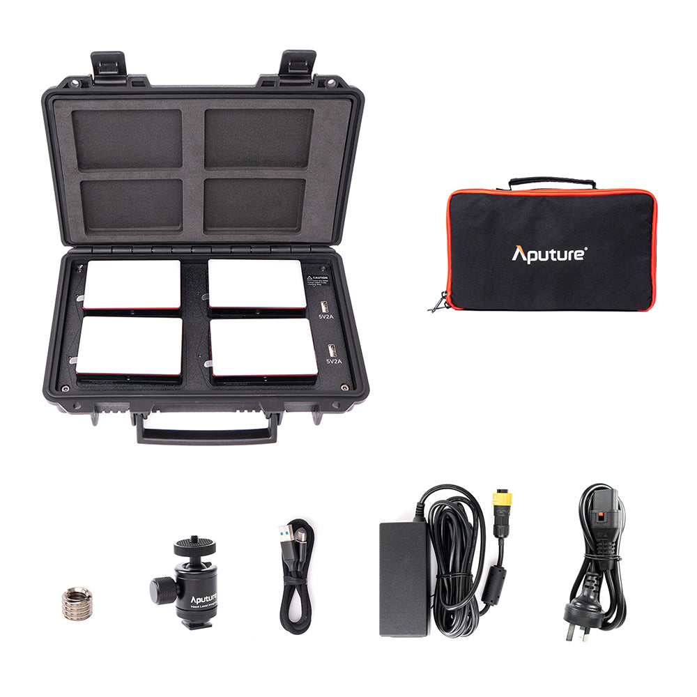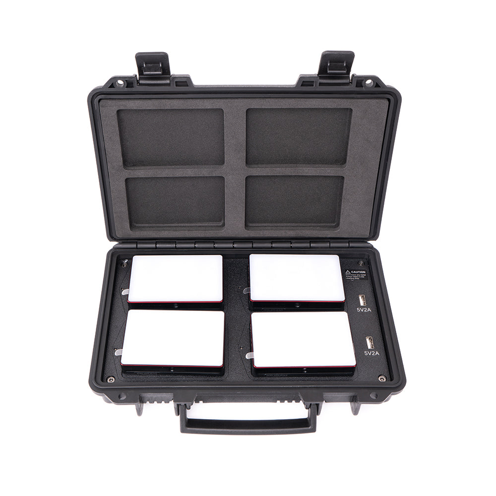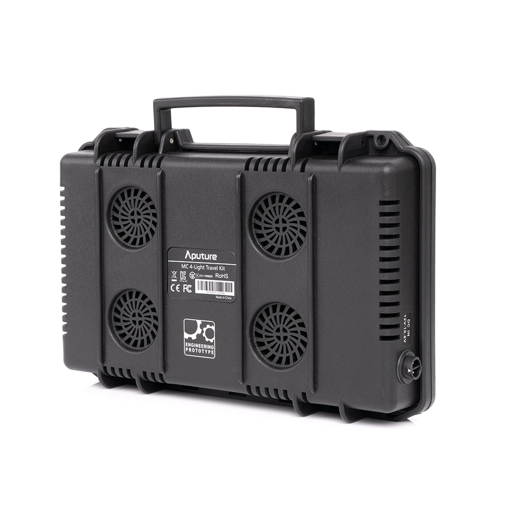Durable, and Convenient Wireless Charging Case The MC is also available in a 4-Light Travel Kit and 12-Light Production Kit. Each of these kits comes with a custom hardshell wireless charging case to protect and conveniently charge your MCs wherever you go. Make your workflow as efficient as possible. The 4-Light Travel Kit was designed for guerilla and travel filmmakers, so you can slip the case into your camera bag or backpack while you're on the move.