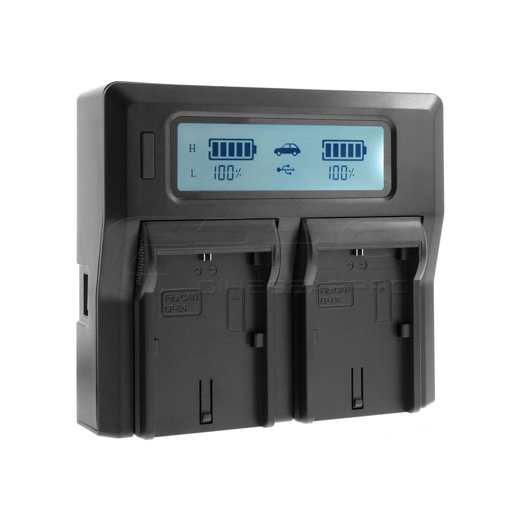 CGPro LP-E6 Dual Digital Battery Charger w/ LCD Display For LP-E6