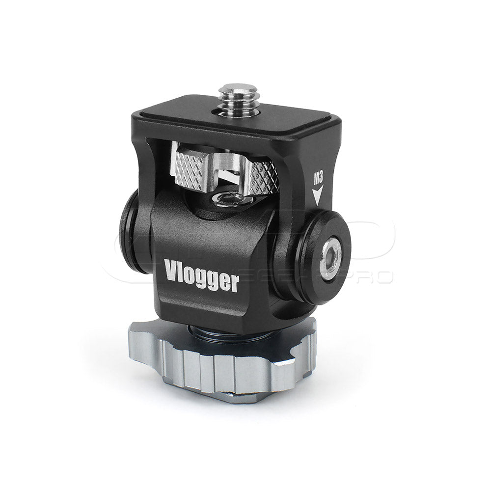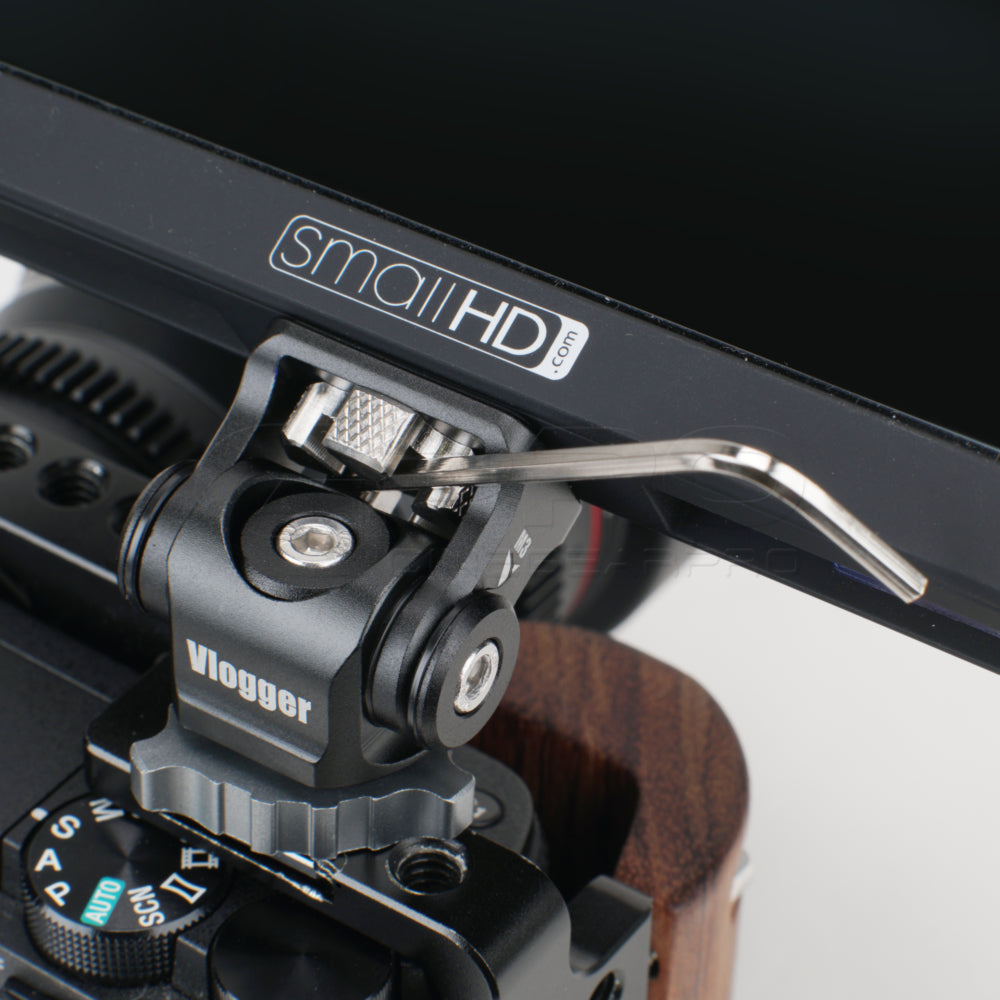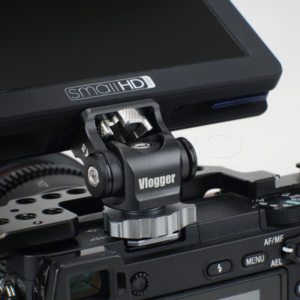The Vlogger Multi-Functional Monitor Mount allows you to attach a small monitor or accessory to a standard cold shoe mount. The monitor mount allows for an 180-degree tilt and a 360-degree swivel, with built-in dampening for smooth rotations.