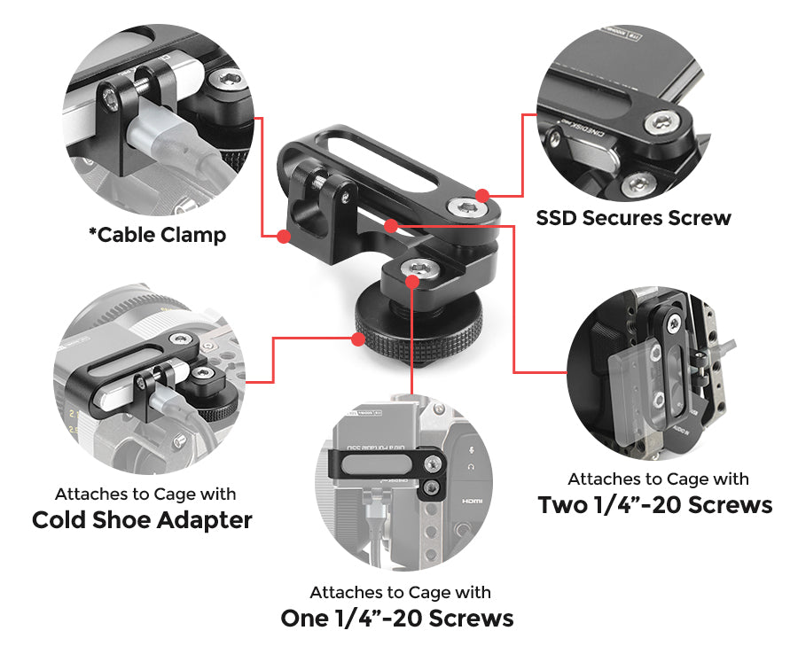 - Optional CINEDISKPRO Ultra Portable SSD MK1 Clamp
