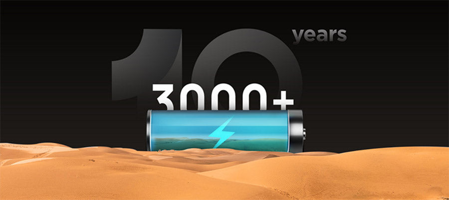 With upgraded long-lasting LFP battery chemistry at its core, charge and empty RIVER 2 Series over 3000 times. That's pretty much 10 years of everyday use1 and 6x longer than the industry average. With LFP cells, RIVER 2 Series is safe, durable, and highly efficient, even in warm temperatures.