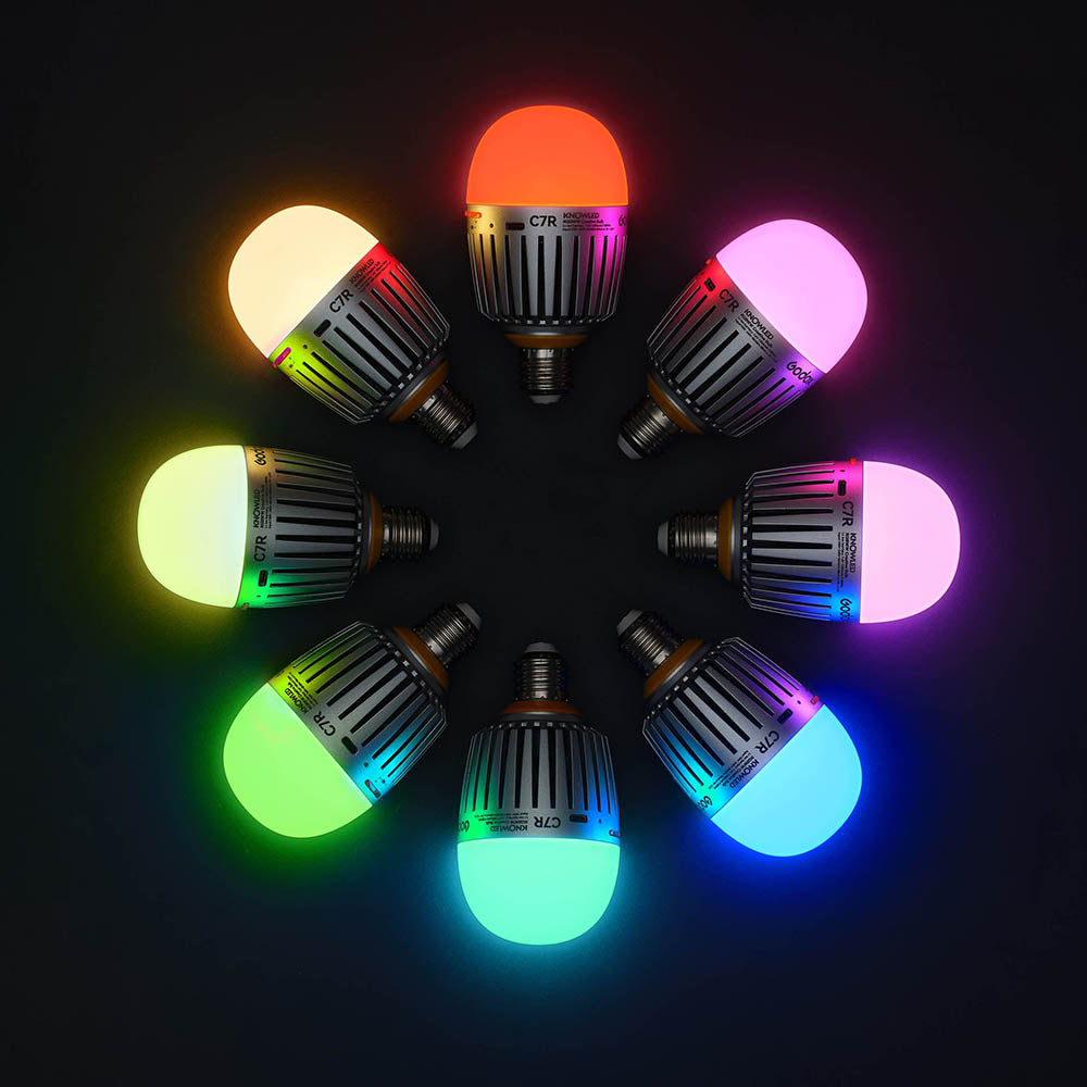 The GODOX KNOWLED C7R RGBWW Light Bulb LED is the perfect lighting solution for filmmakers, cinematographers, lighting gaffers, and theatrical productions that are looking for a light bulb that they can seamlessly integrate into their workflow, for practical set lighting.