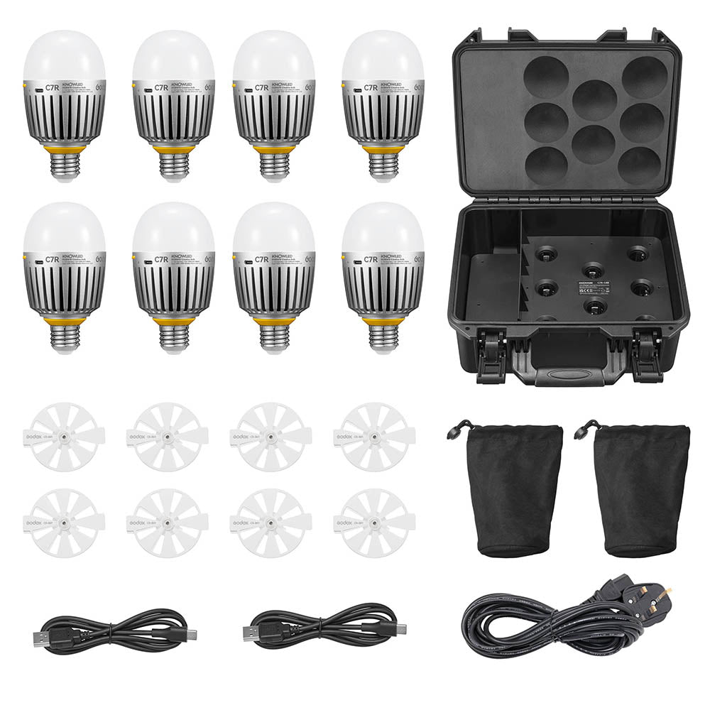 GODOX KNOWLED C7R K8 E27 RGBWW Creative Bulb 8-Light Kit For Practical Set Lighting With Built-In Battery