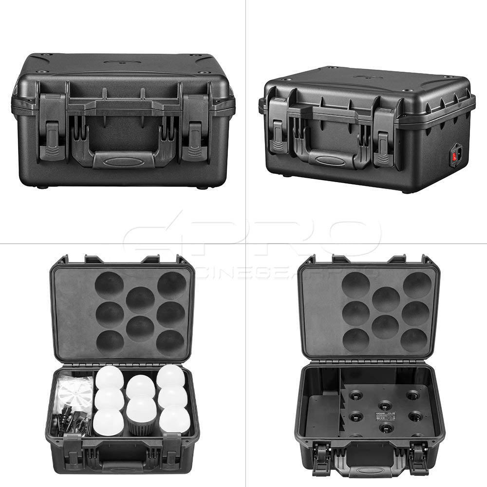 The C7R K8 kit comes with the C7R-C8 charging case power inverter, enabling you to charge all eight C7R RGBWW Bulbs simultaneously without needing to find eight separate USB power outlets to charge them all. Perfect for use on larger sets that require a lot of bulbs.