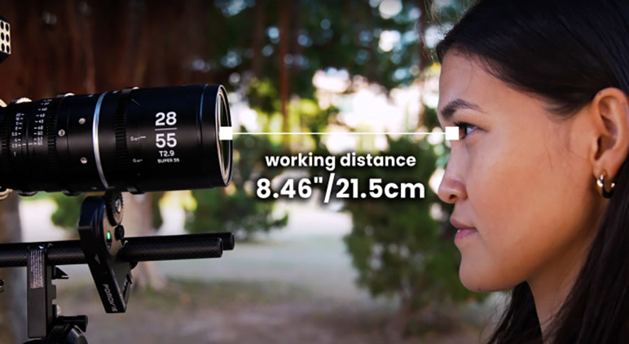 With the Nanomorph Zoom's short closest focusing distance of up to 45cm (1'5") on the 28-55 Nano Zoom (working distance up to 8.46"/21.5cm), you can capture stunning close-up shots and effortlessly shoot in tight spaces. This feature opens up a world of creative possibilities, allowing you to bring your subjects to life with dramatic close-up details.