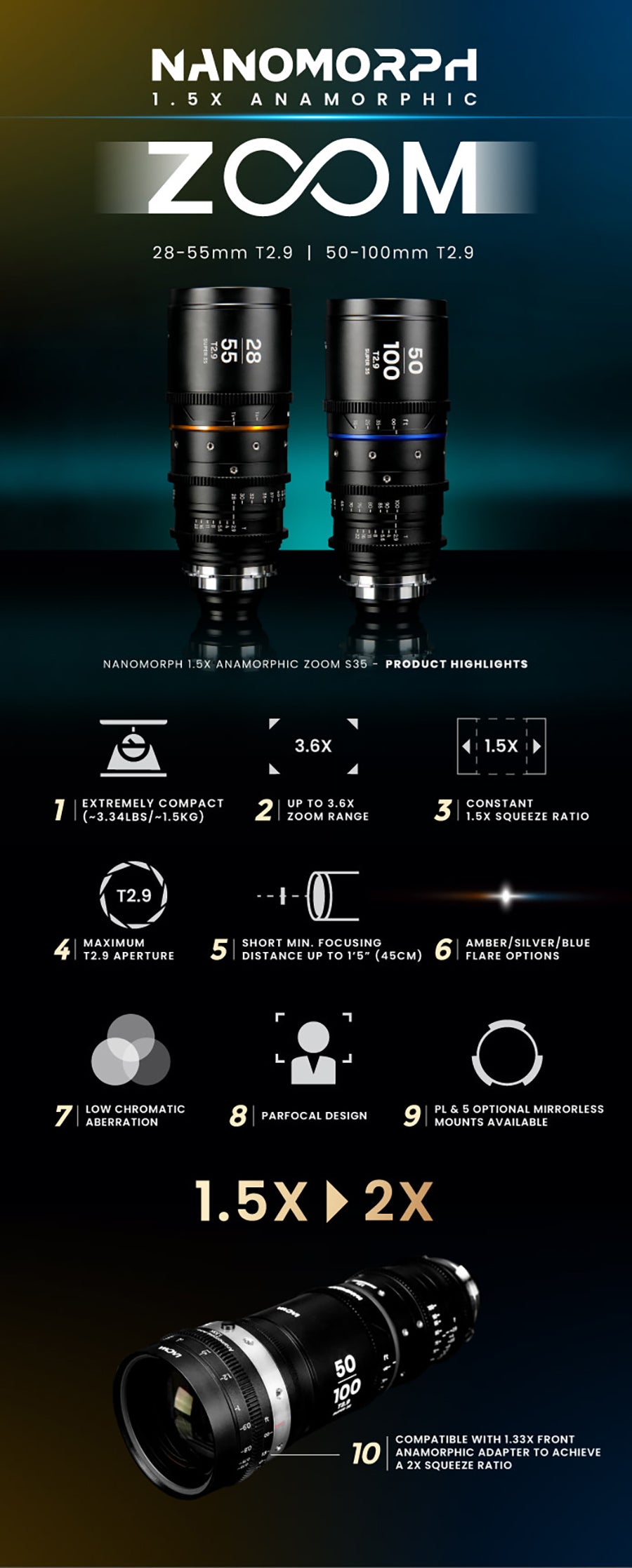 1x Laowa Nanomorph Zoom 50-100mm T2.9 1.5X S35 Anamorphic Lens