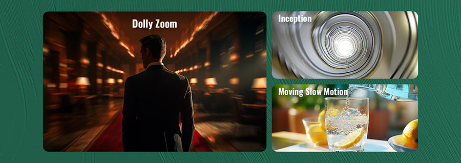 reminiscent of directors like Alfred Hitchcock, scenes from lnception, and Moving slow motion.