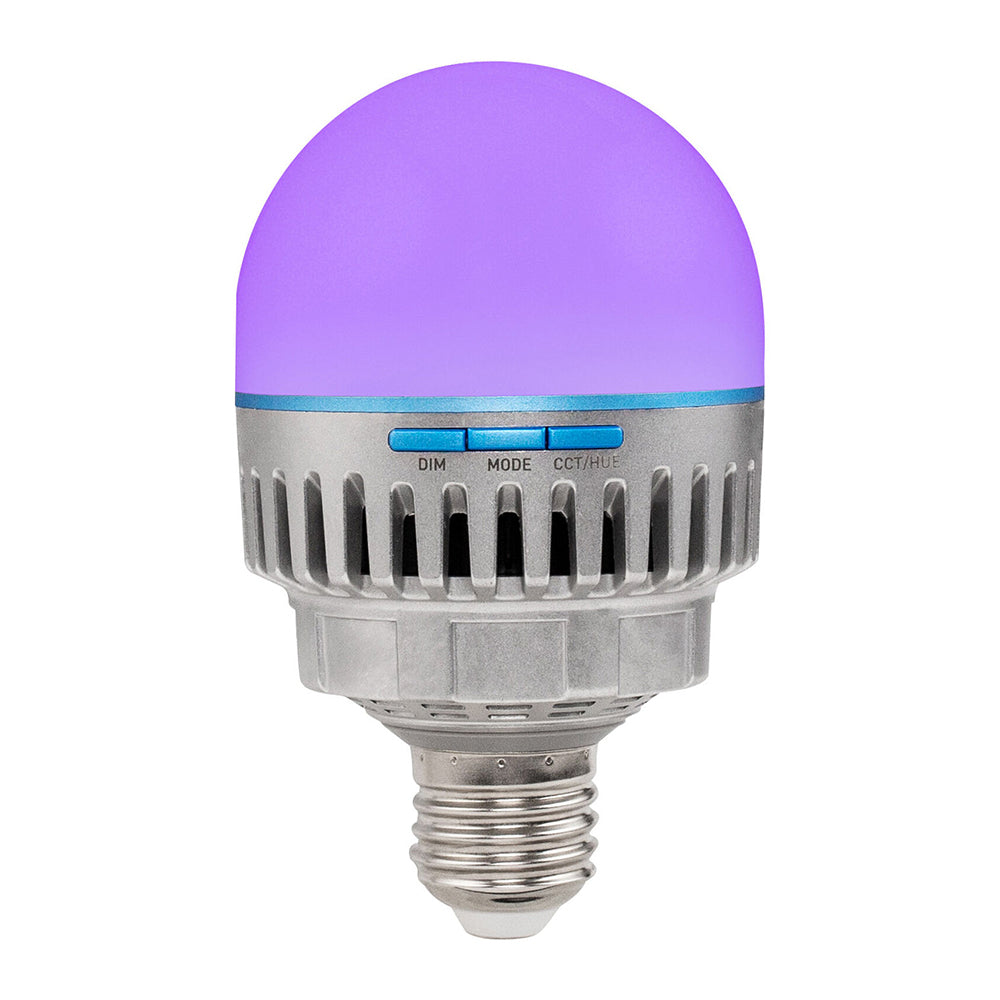 The PavoBulb 10C Bi-Color RGBWW LED Bulb from Nanlite is an LED bulb that was made for creative production. It attaches to a standard lamp socket and provides highly accurate light with a CRI of 95 and TLCI of 97. It has an expanded color temperature range of 2700 to 7500K, with stunning RGB color and 15 built-in, customizable effects. Three buttons provide quick setup, but deeper control is wirelessly available via Bluetooth using the free NANLINK mobile app or through 2.4G using NANLINK remote controls.