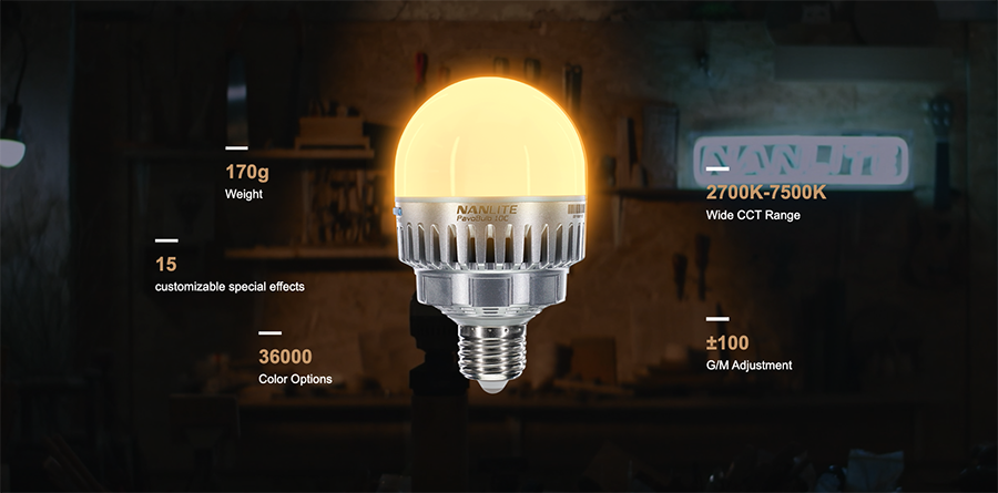 The PavoBulb 10C provides complete control over the practical lights in productions, but it's also a part of the larger Nanlite ecosystem of professional lighting fixtures. It can be used and controlled alongside Nanlite LED tube lights, LED panels, and monolights, all of which can be wirelessly controlled with the NANLINK app and remotes.