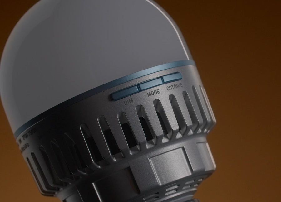 PavoBulb 10C features a wide large angle diffuser with an improved beam angle. The distance between the LED beads and the diffuser is precisely engineered to optimize both the diffusion effectiveness and the illuminance level. As a practical in the frame, the overall filmic tone will be naturally elevated with its advanced design. A Variable beam angle can also be easily enabled by maneuvering another compact bouncer with suction cup, offering even greater control for such a compact light source.