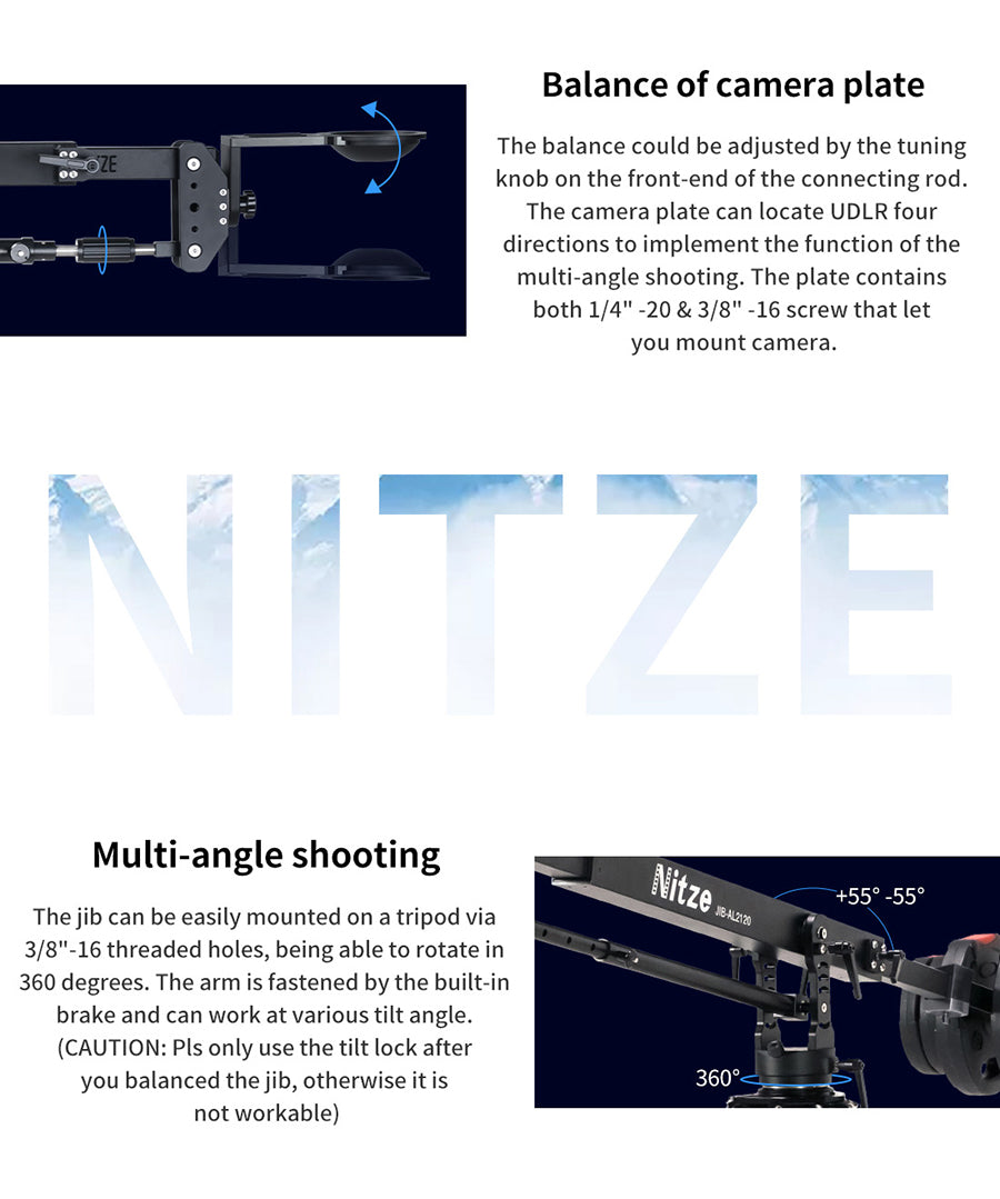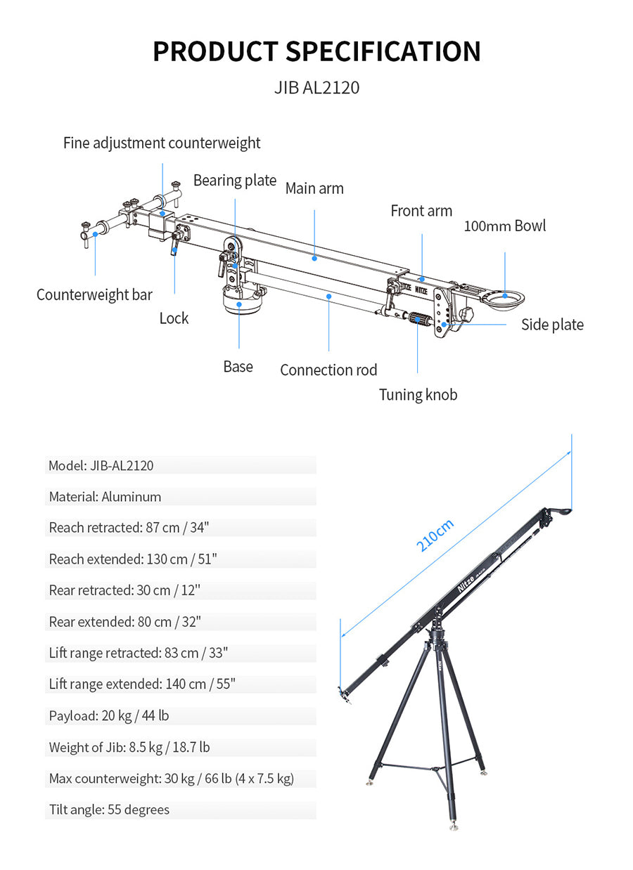 - The jib is stable, portable, small when folded up, and its balance is easily adjustable
