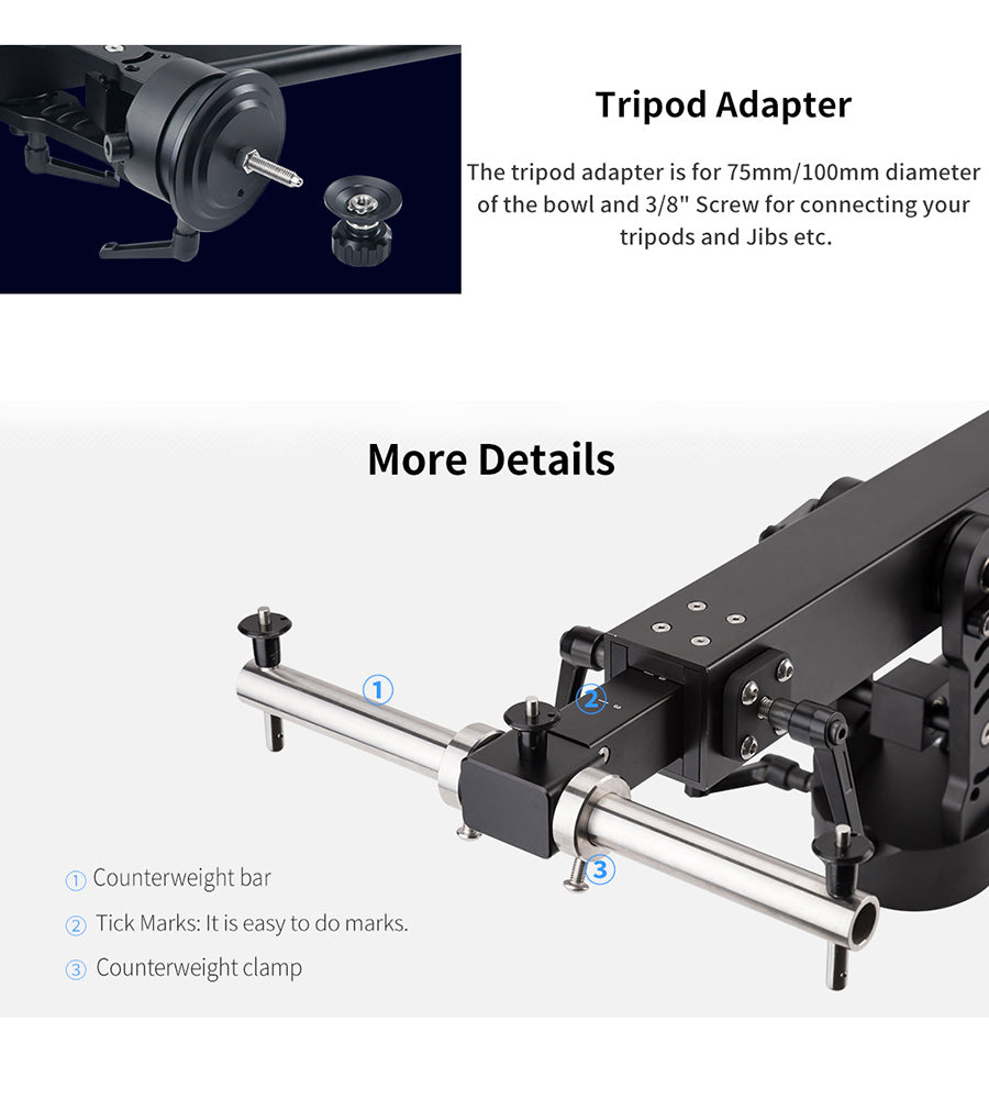 - The adjustable rear arm can regulate the balance with the help of the counterweight bar