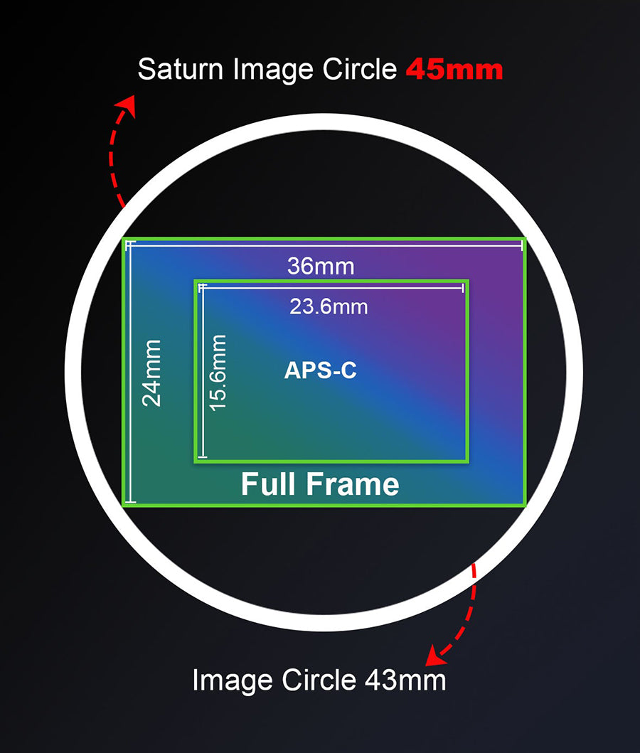 45mm image circle of SIRUI Saturn Series is large enough to cover 43mm full frame.