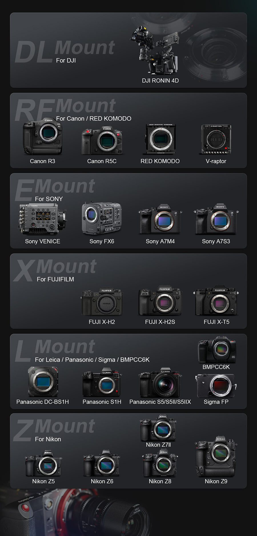 The Saturn Series 35, 50, 75mm's front barrel are constructed with carbon fiber and high precision glass moulding aspherical elements have been used to reduce overall all 3 lenses weight to less than 500g. This lightweight full frame anamorphic lens will be your first on-the-go choice!