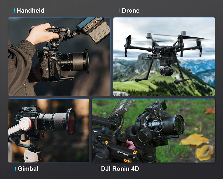 SIRUI's independent and innovative R&D make sure that the three lenses in this set are designed with similar weight. When used on cameras or other setups, the overall weight remains favorable.