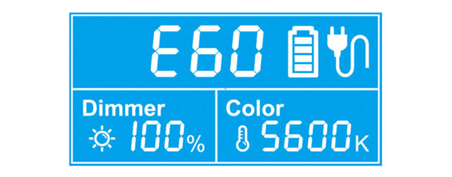 PL-E60 supports quick adjusting brightness and color temperature: Press the Dimmer knob, it will switch from 1% stepping to 10% stepping, to quick adjust brightness; Press Color temperature knob, it will switch from 50K stepping to the following commonly used color temperature selection: 2700K / 3200K / 4500K / 5600K / 6500K.