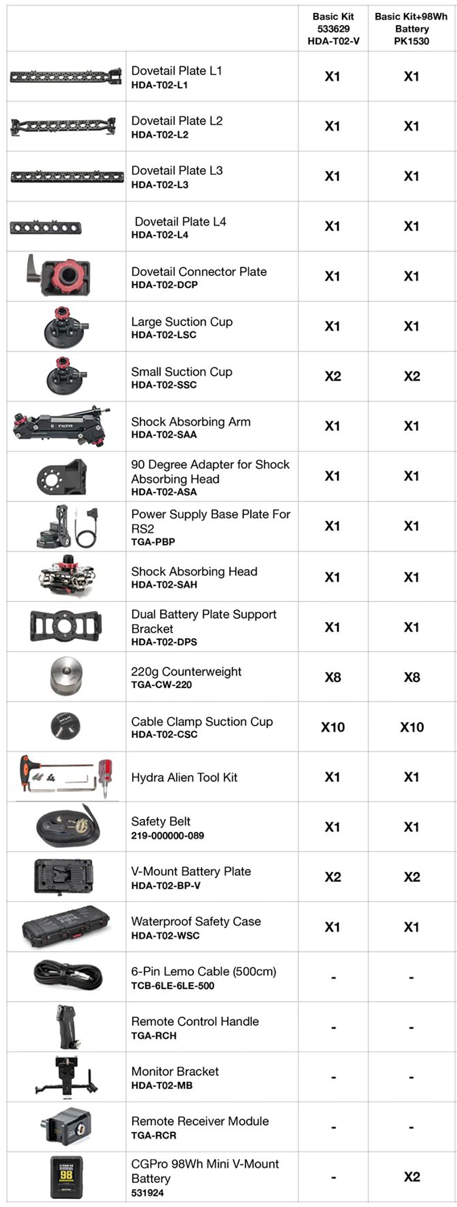 The Hydra Alien supports full wireless control of the RS2 / RS3 Pro via the included Remote Control Kit for RS2 / RS3 Pro which allows you to control your RS2 / RS3 Pro gimbal’s settings as well as the record and photo functions of your camera via either a wired or wireless connection.