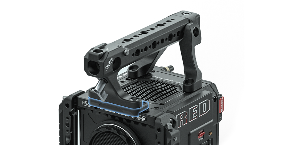 Install the top handle directly to the top of the camera body via the top handle adapter attachment.