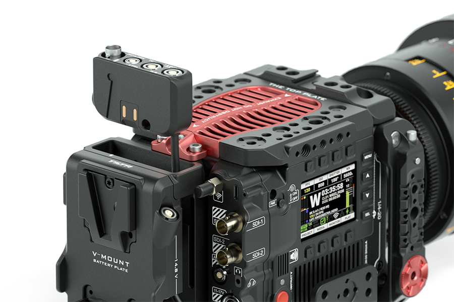 The Full Camera Cage provides protective armor for the RED V-Raptor and greatly expands your options for mounting accessories. The cage features both ¼”-20 and 3/8”-16 threads, integrated NATO Rails for Side Handles and two Arri compatible rosettes. The included 15mm LWS Baseplate and two 15mm Rods allow you to utilize rod based accessories such as matte boxes and follow focus systems. Under the Baseplate you’ll find a Tilta Standard Dovetail Receiver which can be adapted to support Arri Standard Dovetails via our optional Tilta Standard to Arri Standard Multi-Functional Baseplate. The Top Plate and Rear Top Plate offer expanded options for mounting accessories without interfering with the camera’s ventilation. The Top Plates include 1/4″-20 and 3/8”-16 mounting points, both with and without locating pins and a single Cold Shoe Receiver. The Rear Top Plate also includes exhaust vents engineered to mimic the V-Raptor’s integrated ventilation system in order to provide maximum cooling capability. The Top Handle attaches to both the Top Plate and Front Top Plate which creates a secure point of contact for handling and operating your camera while also providing additional mounting points for accessories. This Top Handle features both 1/4”-20 and 3/8”-16 mounting points with locating pins as well as one cold shoe receiver. This Top Handle can also be broken down into a more compact configuration that only requires the Front Top Plate to mount in order to better accommodate lightweight camera builds. The Top Handle’s newly designed 15mm rod mount allows you to mount a single 15mm rod either parallel or perpendicular to the Top Handle, allowing for more flexibility when mounting electronic viewfinders or external monitors. The included Bottom Mounting Plate attaches near the bottom of the Camera Cage, offers additional 1/4”-20 mounting points with locating pins, and serves as an alternative location to mount the Advanced I/O Module. The Right and Left Side Single Rod Holders mount along the side of the Full Camera Cage which provide a lightweight alternative to the baseplate. The included Battery Plate adapts the RED V-RAPTOR’s Micro V-Mount Battery Plate to either a Gold Mount or Full Sized V-Mount Battery Plate, as well as provides a convenient slot to power and mount the included Advanced I/O Module. The V-Mount option features an adjustable plate that allows you to fine tune the height of your battery to better accommodate different sized batteries which helps keep your build balanced and clean. This Advanced I/O Module utilizes an integrated V-RAPTOR EXT Cable that expands communication with the camera body and offers increased functionality for Run Stop and Timecode via additional ports. This Module can be mounted in a few different locations on the V-Raptor’s Camera Cage including the Top Handle, Top Plate, Bottom Mounting Plate or the integrated slot on the Battery Plate which can provide power and support the module. When mounting the module in different locations other than the Battery Plate, the module can be powered via a 2 Pin Lemo input.